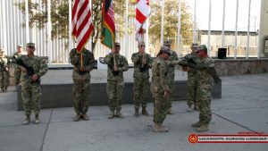 უფლებამოსილების გადაბარების ცერემონიალი ბაგრამის საავიაციო ბაზაზე გაიმართა. ღონისძიება საქართველოს, ამერიკის შეერთებული შტატების და ავღანეთის რესპუბლიკის სახელმწიფო ჰიმნებით დაიწყო. შეკრებილმა საზოგადოებამ წუთიერი დუმილით პატივი მიაგო საქართველოს ტერიტორიული მთლიანობისა და საერთაშორისო მისიებში დაღუპული ქართველი ჯარისკაცების, ასევე სამოქალაქო პირთა ხსოვნას.