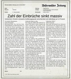 გამოცემა Westerwälder Zeitung-მა გერმანიის რაინლანდ-პფალცის ფედერალურ მიწაზე დანაშაულის წინააღმდეგ ბრძოლის შესახებ, სტატია გამოაქვეყნა შემდეგი სათაურით – „ძარცვის რიცხვმა მნიშვნელოვნად იკლო“.