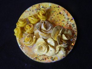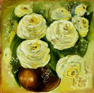 – უფრო აბსტრაქციაა, ფერწერულ კოლაჟებს ვუწოდებდი. ვიყენებ ნიჟარას, ხეს, მძივს, კენჭებს… რომ ვიწყებ ხატვას, არ მაკმაყოფილებს მხოლოდ საღებავი და ჩემი ფანტაზიით ვქმნი ასეთ კოლაჟებს. ადრე ზეთით ვხატავდი, ახლა აკრილიც შევაპარე. ამ ბოლო დროს პოლიმერულ თიხასაც ვიყენებ.