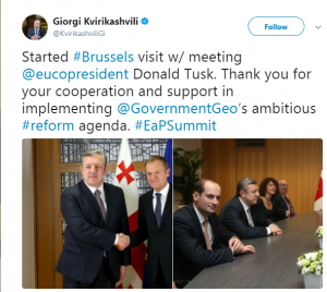 გიორგი კვირიკაშვილთან შეხვედრის შემდეგ, ევროკავშირის საბჭოს პრეზიდენტმა, საქართველოს პრემიერ-მინისტრს “ტვიტერზე” ამბიციური რეფორმების ჩატარება მიულოცა. „მივულოცე გიორგი კვირიკაშვილს საქართველოს ამბიციური რეფორმების ჩატარება და ვემზადებით „აღმოსავლეთ პარტნიორობის” სამიტისთვის” – წერს „ტვიტერზე“ ევროკავშირის საბჭოს პრეზიდენტი.