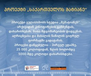 პროექტი გულისხმობს სტუდია „მემატიანეს“ არქივიდან კინოფირების (დოკუმეტური აუდიო და ვიზუალური მასალის) გაწმენდას, დახარისხებას, მათი მდგომარეობის დადგენას, აღრიცხვასა და მასალის ნაწილის ციფრულ ფორმატში გადატანას. პროცესი დაწყებულია – პირველ ეტაპზე, წლის ბოლომდე 5000-მდე კოლოფი დახარისხდება. ფირების ციფრულ ფორმატში გადაყვანას კინოსტუდია „ქართული ფილმი“ საკუთარ მატერიალურ-ტექნიკურ ბაზაზე განახორციელებს.