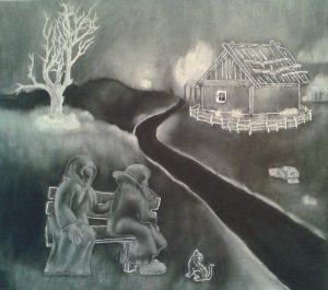 მაქვს ერთი ნახატი – ბავშვი ჩემოდნით დგას და არ აწერია, სად მიდის, რადგან არ იცის. ეს ბავშვი რომ დავხატე, ზუსტად რამდენიმე დღის მერე, წარმოუდგენლად მოგეჩვენებათ, მაგრამ ვნახე იგი.
