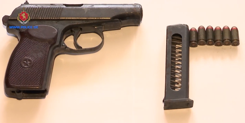 სამართალდამცველებმა, ბრალდებულის საცხოვრებელ სახლში ჩატარებული ჩხრეკის შედეგად, მაკაროვის სისტემის ცეცხლსასროლი პისტოლეტი, მჭიდი და 6 ვაზნა ამოიღეს.