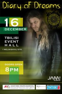 16 დეკემბერს, 20:00 საათზე, Tbilisi Event Hall-ში, კომპანია „JAM! Events“-ის ორგანიზაბით, გერმანული ბენდის – DIARY OF DREAMS-ის კონცერტი გაიმართება. როგორც „კვირას“ ორგანიზატორებმა განუცხადეს, კონცერტი საქართველო-გერმანიის (2017) წლის ფარგლებში ჩატარდება და გერმანიის საელჩოს მხარდაჭერით გაიმართება.