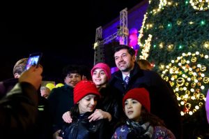 დედაქალაქის მთავარი ნაძვის ხე უკვე განათდა. ამ წუთებში რიგით მოქალაქეებთან ერთად, რუსთაველის გამზირზე თბილისის მერი კახა კალაძე იმყოფება.