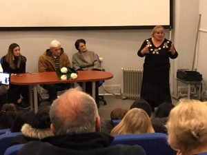 ამ კითხვებს ეროვნული ბიბლიოთეკის კინოდარბაზში გამართულმა შეხვედრამ გასცა პასუხი. შეხვედრის მოთავენი პროექტ „გაფანტული ალმასების“ ორგანიზატორები – ეთო მდინარაძე და მანანა კორძახია იყვნენ. მათ მოიწვიეს არა მხოლოდ გოჩა აფციაური, არამედ მისი ოჯახის წევრები: მეუღლე – ნინო სამარღანიშვილი-აფციაური, შვილები: ნათია და გია აფციაურები. რძალი სალომე გოგრიჭიანი. ნათია ჟურნალისტია, გია – იურისტი და ეკონომისტი.