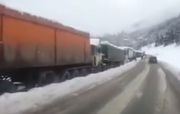 ინტენსიური თოვის გამო, გუდაური-კობის მონაკვეთზე ტრაილერების მოძრაობა აკრძალულია – ვიდეო