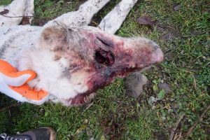 „ეს ძაღლი არის კახეთში ჩემი მეზობლის. ( გურჯაანის რნ. სოფ. შაშიანი ) რამდენიმე დღის წინ დაკარგა კავკასიური ქოსა ნაგაზის ჯიშის ძაღლი, წლინახევრის… ინფორმაცია გამოაქვეყნა ყველგან და პრიზიც დააწესა… გუშინ კი ჩემი სოფლის სანაგვეზე იპოვეს ცოცხალ-მკვდარი, ნაწამები, აქვს ნასროლიც კი, სახის არეში.