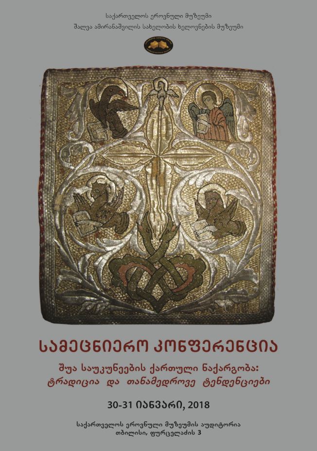30-31 იანვარს, საქართველოს ეროვნული მუზეუმის შალვა ამირანაშვილის სახელობის ხელოვნების მუზეუმში სამეცნიერო კონფერენცია – „შუა საუკუნეების ქართული ნაქარგობა: ტრადიცია და თანამედროვე ტენდენციები” გაიმართება.