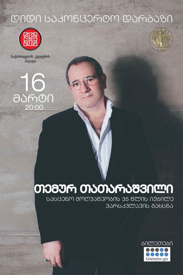 16 მარტს, 20:00 საათზე, ფილარმონიის დიდ საკონცერტო დარბაზში თემურ თათარაშვილის სასცენო მოღვაწეობის 35 წლის იუბილე გაიმართება.