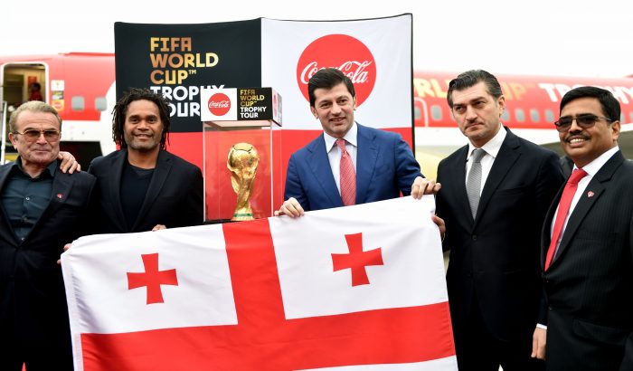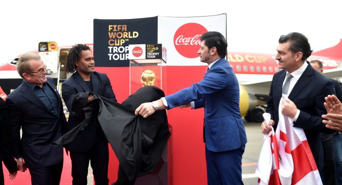 FIFA-ს მსოფლიო თასი უკვე თბილისშია. თასის დახვედრის ცერემონიას თბილისის საერთაშორისო აეროპორტში დედაქალაქის მერი კახა კალაძე დაესწრო. თასის ტური საქართველოში კოკა-კოლამ თბილისის მერიასთან და ფეხბურთის ფედერაციასთან პარტნიორობით უზრუნველყო. დღესვე, ფეხბურთის ქართველ გულშემატკივარს შესაძლებლობა ექნება, უმაღლესი საფეხბურთო ჯილდო პირადად იხილოს.