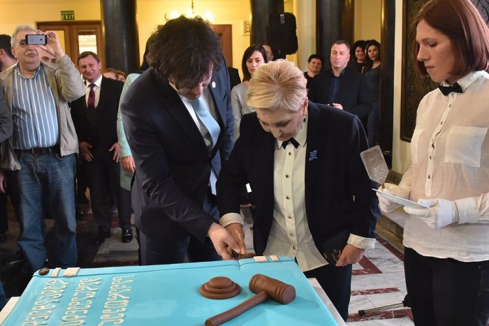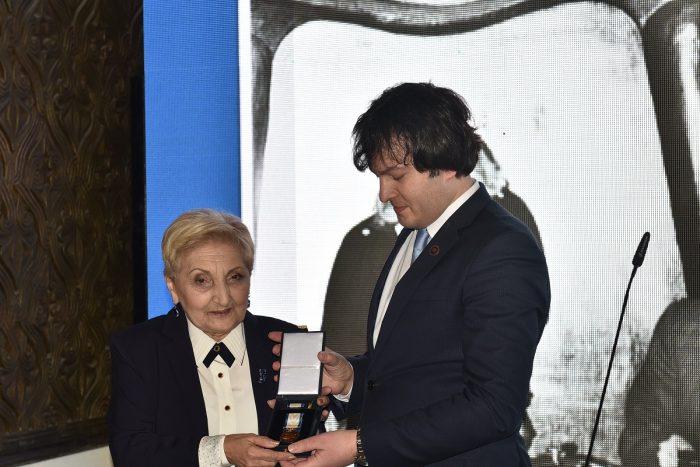 ირაკლი კობახიძემ მედალი ეთერ სვიანაიძეს მისი პარლამენტში საქმიანობის 50 წლის აღსანიშნავ ღონისძიებაზე გადასცა.
