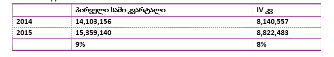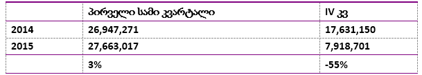 შემოსავლების განაწილების სტრუქტურის ცვლილებას სარეკლამო ბაზარზე ადგილი ჰქონდა 2015 წლის მეოთხე კვარტალშიც, თუმცა სხვა მიზეზით. ამას ტელეკომპანიების 2014-2015 წლების შემოსავლებისა და შეწონილი სარეიტინგო პუნქტების კვარტალურ ჭრილში ჩატარებული შედარებითი ანალიზი აჩვენებს .