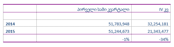 კერძოდ, 2015 წლის პირველი სამი კვარტლის შემოსავლები (კომერციული რეკლამიდან და სპოსორობიდან) 2014 წლის ანალოგიური მაჩვენებელის ტოლია, ხოლო 2015 წლის მეოთხე კვარტლის შემოსავლები 2014 წლის ანალოგიურ პერიოდთან შედარებით 34%–ით მცირდება.