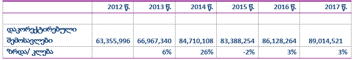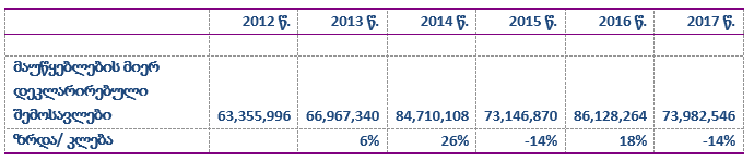 2012-2017 წლების მონაცემებით სატელევიზიო სარეკლამო შემოსავლები მზარდია