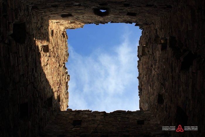 თითოეული სართულის კედლებში დატანებულია სარკმელ-სათოფურები.