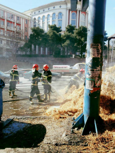 კოსტავას გამზირზე სატვირთო მანქანას ცეცხლი გაუჩნდა (ფოტოკოლაჟი)