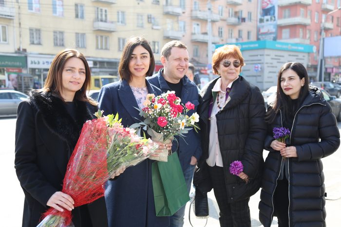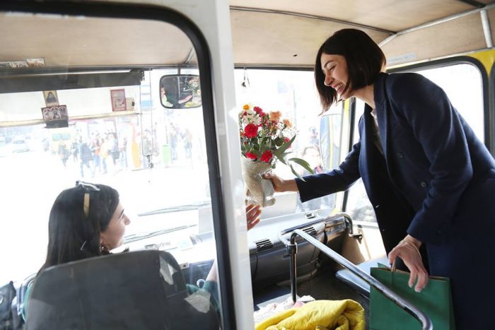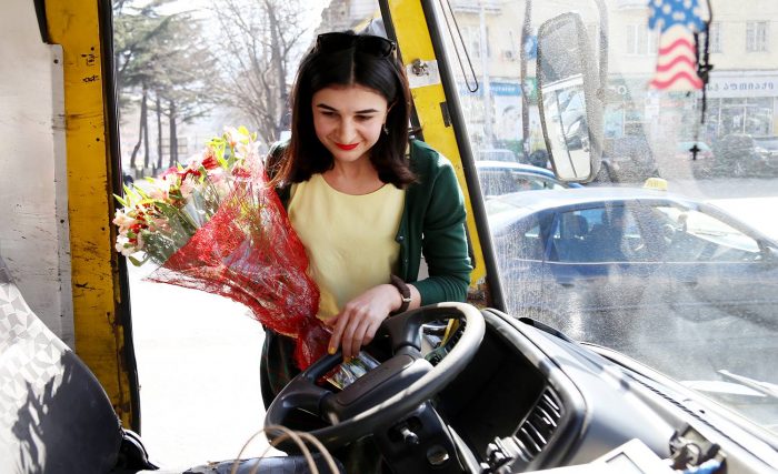 საკრებულოს წევრებმა ავტობუსის მძღოლ ქალებს 8 მარტი მიულოცეს (ფოტოკოლაჟი)