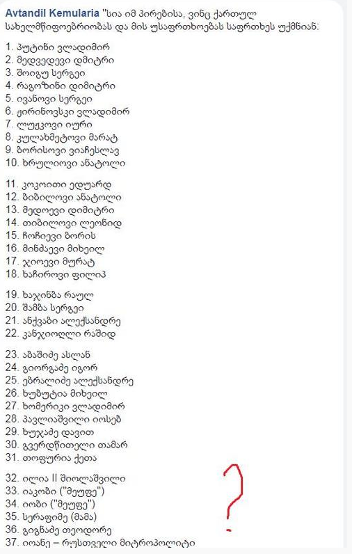 „სია იმ პირებისა, ვინც ქართულ სახელმწიფოებრიობას და მის უსაფრთხოებას საფრთხეს უქმნიან: