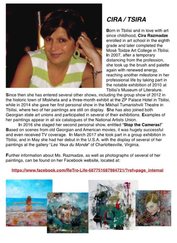 – შარლოტსვილის  გალერეაში თვენახევრიანი ჯგუფური გამოფენა გაიმართა, 12 ნახატი გავაგზავნე, ბევრი გაიყიდა,  მეც ვისურვებდი ასეთ გალერეას, ისე მომეწონა… ეს ისე – სამომავლოდ…