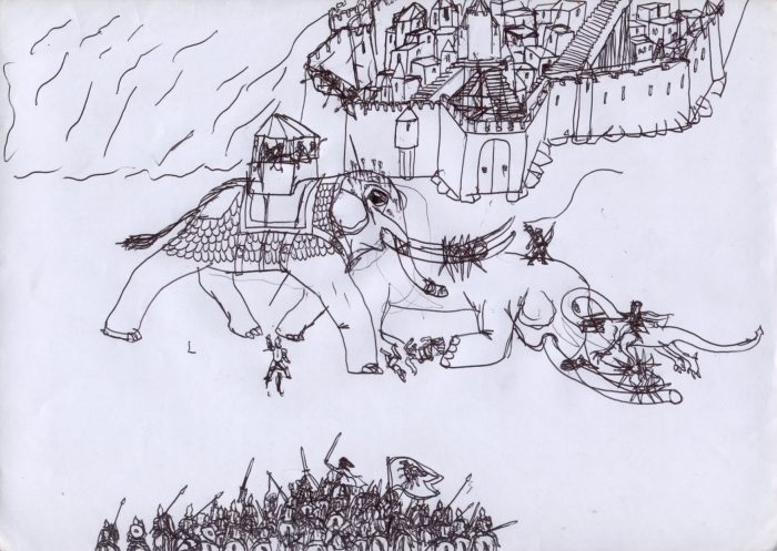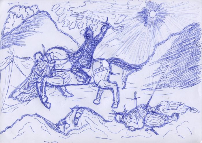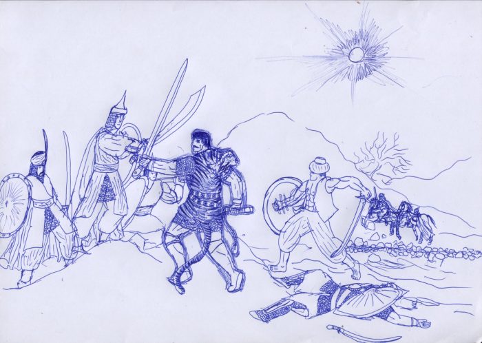 ფილმის დასრულების შემდეგ რაც მოხდა, ნინომ მშვენივრად აღწერა მის პირველ წიგნში: ,,ბეგიმ ფურცელი და პასტა მომთხოვა, მაგიდასთან მოკალათდა და ხატვა დაიწყო. ღამის 10 საათზე დედამისმა ხვეწნა დაუწყო: წავიდეთ, ტრანსპორტი აღარ იქნებაო. მაცადე, სამასნი იყვნენ, ყველა უნდა დავხატო, თავაუღებლად უპასუხა ბეგიმ. მოგეხსენებათ, ფილმ ,,აღდგომაში“ არცერთი პერსონაჟი არ ჩანს, ფილმის ბოლოს ისმის ბრძოლის ხმები, ამ ხმების მიხედვით და თავისი უსაზღვრო ფანტაზიის წყალობით ბეგიმ დახატა კრწანისის ბრძოლა 300 არაგველით, სპარსელებით, მეფე ერეკლეთი და არაგველების მოზარე გოდერძი ჩოხელით. დახატა და წავიდა.