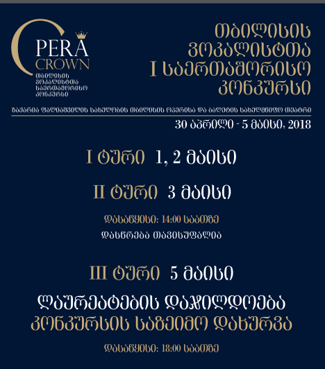 5 მაისს, ოპერის თეატრში, თბილისის ვოკალისტთა I საერთაშორისო კონკურს OPERA CROWN-ის ფინალი ჩატარდება.