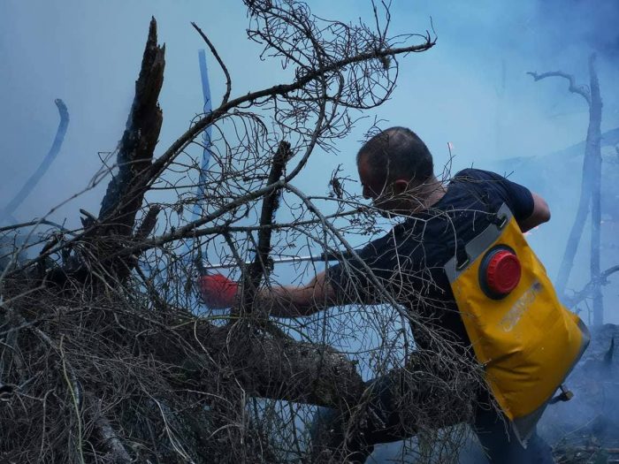 ხანძრის შედეგად, ხმელი ხეები და ბუჩქები დაიწვა.