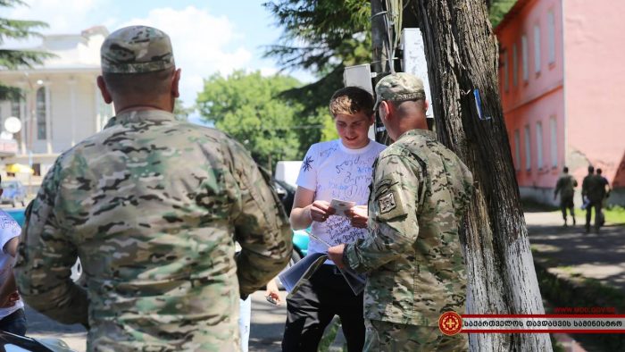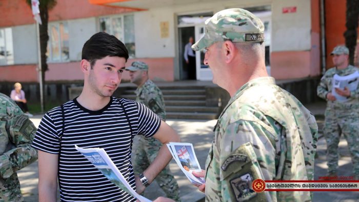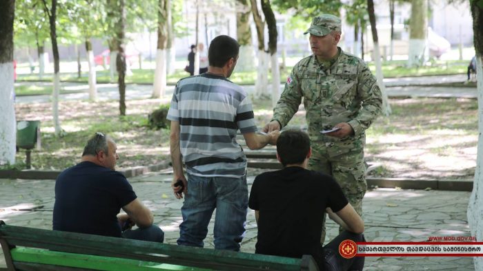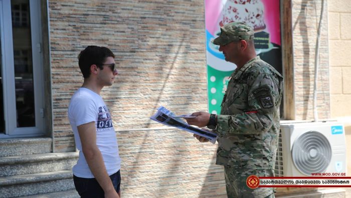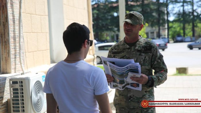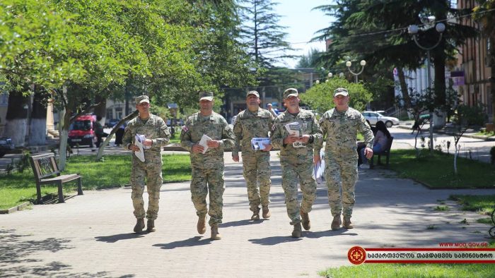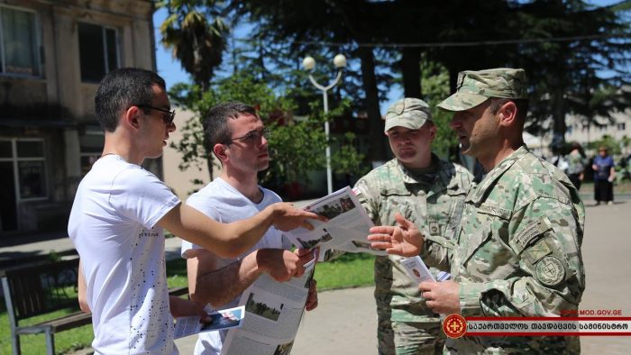 ჯარისკაცებმა დასავლეთ საქართველოს სხვადასხვა რაიონულ ცენტრებში საინფორმაციო შეხვედრები გამართეს. სამხედრო მოსამსახურეებმა ადგილობრივ მცხოვრებლებს საკონტრაქტო სამხედრო სამსახურის შესახებ ინფორმაცია მიაწოდეს და პირობები დეტალურად გააცნეს. საინფორმაციო კამპანია დღეს ქალაქ ხონში, ზუგდიდსა და სამტრედიაში გაიმართა.