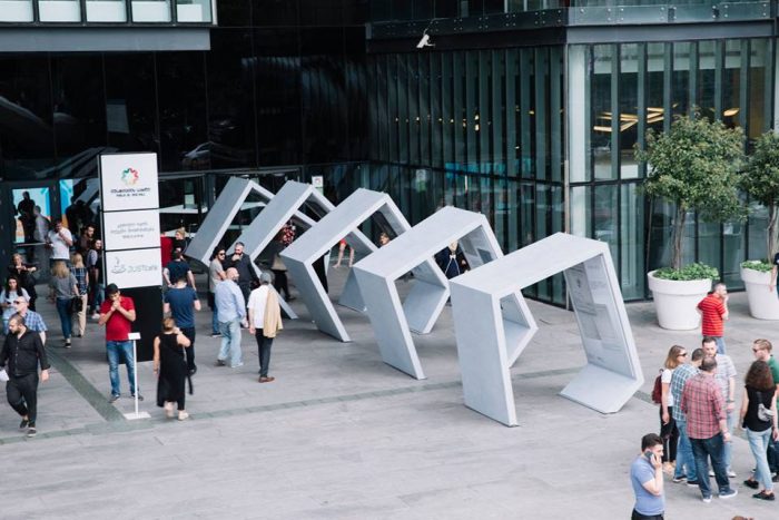 იუსტიციის სახლის შესასვლელთან აღმართული თაღი იმ გზის სიმბოლოა, რომელიც საქართველომ ერთი საუკუნის განმავლობაში გაიარა ევროპასთან დასაბრუნებლად. თანამედროვე ბიომეტრიული პასპორტის ასაღებად მისულ საქართველოს მოქალაქეებს სიმბოლურად იმავე გზის გავლა მოუწევთ, რაც ქვეყანამ 1918 წლიდან დღემდე განვლო. ინსტალაციაზე დატანილია ინფორმაცია ყველა სამგზავრო დოკუმენტის შესახებ, რომლებითაც საქართველოს მოქალაქეები 1918 წლიდან დღემდე სარგებლობდნენ. სხვადასხვა დროს მოქმედი 6 განსხვავებული სამგზავრო დოკუმენტი მნიშვნელოვნად გამოირჩევა ერთმანეთისაგან და საქართველოს, როგორც ევროპისაკენ მიმავალი ქვეყნის, ტრანსფორმაციას ასახავს.