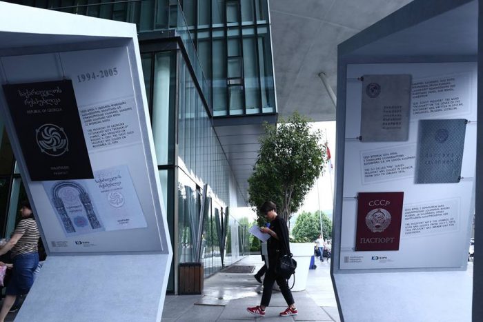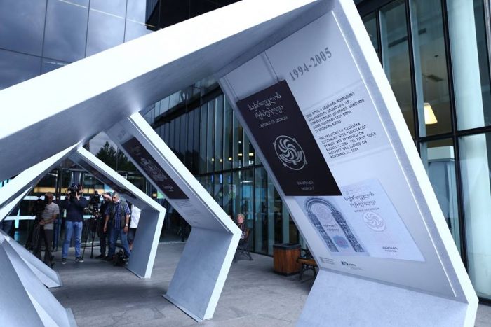 როგორ იცვლებოდა ქართული პასპორტი 1918 წლის დემოკრატიული რესპუბლიკის დოკუმენტიდან თანამედროვე ბიომეტრიულ პასპორტამდე, რომელიც საქართველოს მოქალაქეებს ევროკავშირისა და შენგენის ზონის ქვეყნებში უვიზოდ მოგზაურობის საშუალებას აძლევს – პირველი დემოკრატიული რესპუბლიკის 100 წლისთავთან დაკავშირებით იუსტიციის სახლში 26 მაისის თაღის პრეზენტაცია გაიმართა. ინსტალაცია იუსტიციის მინისტრმა თეა წულუკიანმა გახსნა. ღონისძიებას ესწრებოდნენ იუსტიციის მინისტრის მოადგილეები მიხეილ სარჯველაძე და გიორგი პატარიძე, აგრეთვე, იუსტიციის სახლის დირექტორი გივი აზაურაშვილი, სერვისების განვითარების სააგენტოს ხელმძღვანელი სოსო გიორგაძე.
