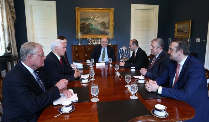 საქართველოს პრემიერ-მინისტრ გიორგი კვირიკაშვილს აშშ-ის ვიცე-პრეზიდენტმა მაიკ პენსმა ვაშინგტონში, საკუთარ სახლში უმასპინძლა. სტრატეგიული პარტნიორი ქვეყნების ლიდერებმა ორი ქვეყნის ურთიერთობის დღის წესრიგში არსებული ყველა საკითხი დეტალურად განიხილეს.