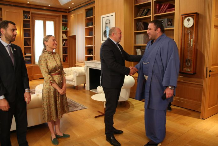 საქართველოს პრეზიდენტმა გიორგი მარგველაშვილმა, პირველ ლედისთან, მაკა ჩიჩუასთან ერთად, პრეზიდენტის სასახლეში ქართველ სუმოისტ ლევან გორგაძეს – ტოჩინოშინს უმასპინძლა.