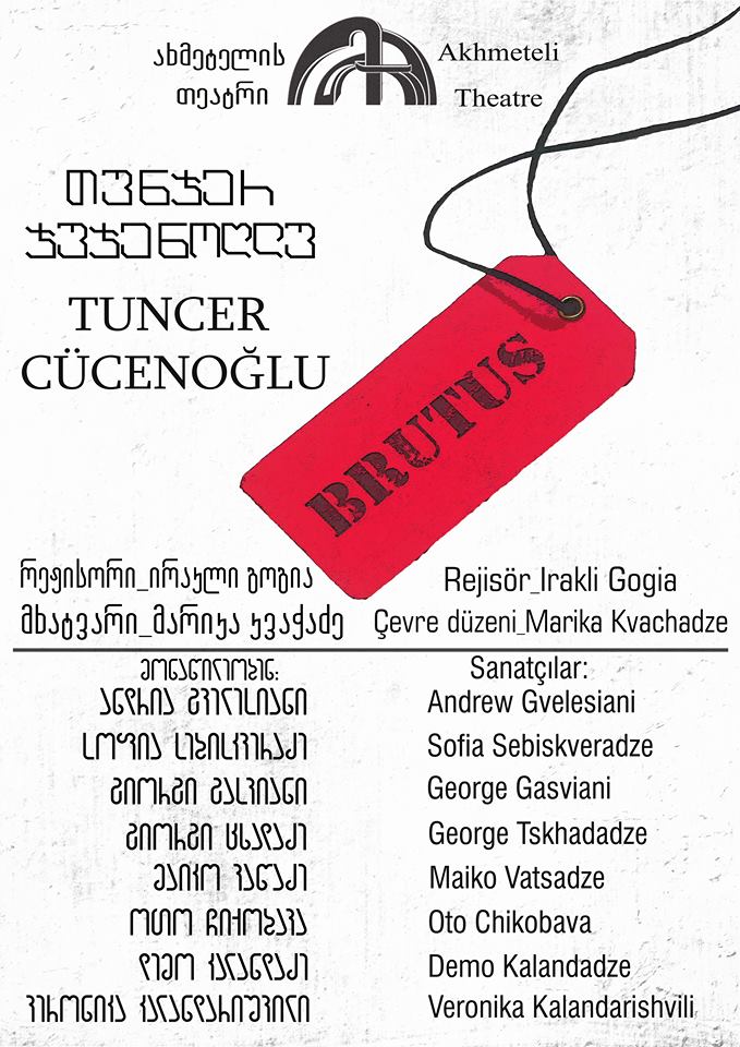 16, 17 ივნისს, 18 საათზე, ახმეტელის თეატრში ცნობილი თურქი დრამატურგის – მრავალი საერთაშორისო ლიტერატურული პრემიის ლაურეატის – თუნჯერ ჯუჯენოღლუს პიესის – „ბრუტუსი, ანუ იულიუს კეისრის მკვლელობა“ – მსოფლიო პრემიერა გაიმართება.