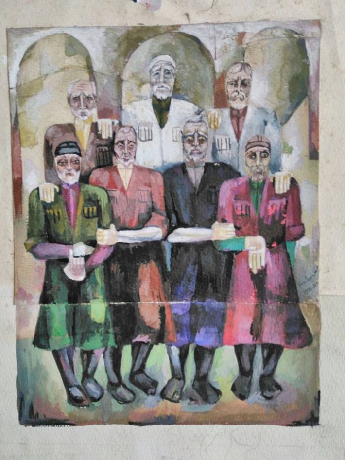 – კომპოზიცია – „ფრთხილად“ დიდი ხნის წინ შეიქმნა. პოლიტიკა არ მაინტერესებს, მაგრამ საშინლად მაღიზიანებს, რაც ჩემ გარშემო ხდება. ეს ესკიზი 1996 წლის 3 იანვარს დავხატე. წინა რიგში პირველი ფიგურა აფრთხილებს, ბოლო კი კითხულობს, ეს არის თქვენი ნაკეთები საქმეო?