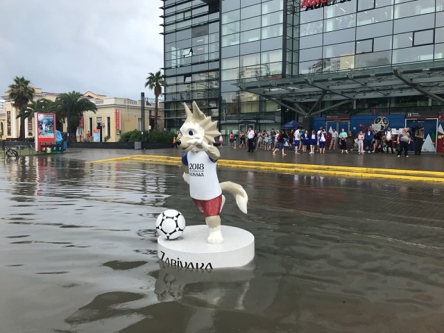 დღეს, სოჭში, მსოფლიო ჩემპიონატის მორიგი მატჩი უნდა გაიმართოს, თუმცა ძლიერი წვიმის შედეგად, საფეხბურთო სტადიონიც დაიტბორა.