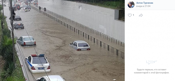 სოჭში, ძლიერმა და ხანგრძლივმა წვიმამ მასშტაბური წყალდიდობა გამოიწვია. დაიტბორა ქალაქის რამდენიმე რაიონი. სტიქიამ საავტომობილო მაგისტრალებზეც პრობლემები შექმნა.