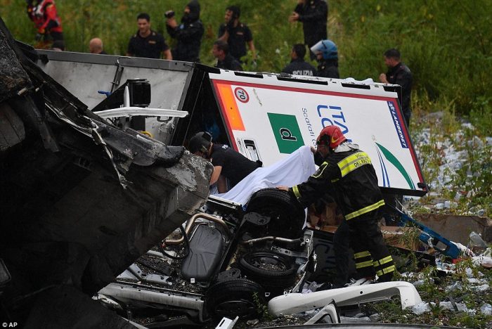 ტრაგედია იტალიაში – საავტომობილო ხიდის ჩანგრევის შედეგად, ათზე მეტი ადამიანი დაიღუპა (ფოტო, ვიდეო)