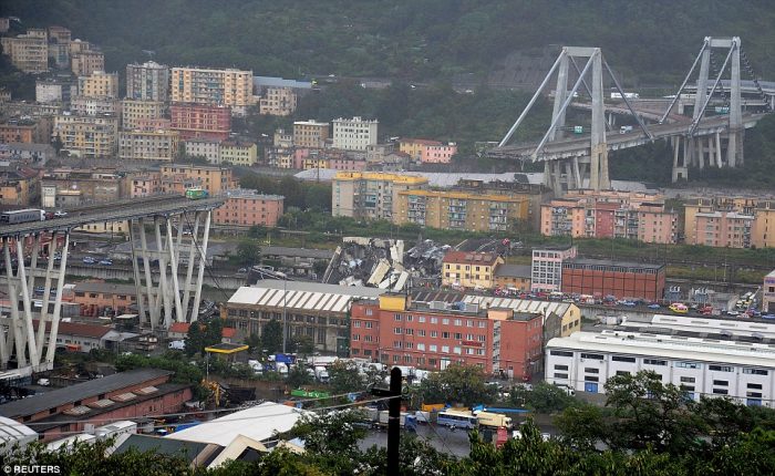 იტალიაში, ქალაქ გენუაში, ტრაგედია დატრიალდა. ქალაქის ცენტრში, საავტომობილო ხიდის ჩანგრევის შედეგად, ათზე მეტი ადამიანი დაიღუპა. ამის შესახებ ინფორმაციას უცხოური მედია ავრცელებს.