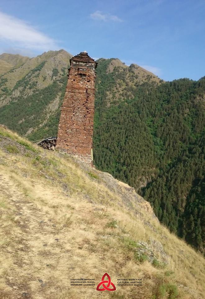 კოშკი ხუთსართულიანია, ზემოთკენ შევიწროვებული. ნაშენია ფიქლით. წყობა მშრალია. დაზიანებულია: ჩამოშლილია II, III და IV სართულებისგადახურვა, მთელ სიაღლეზე დაბზარულია აღმოსავლეთ კედელი.
