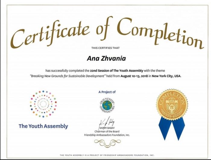18 წლამდე ასაკის ახალგაზრდებს შორის, ქართველი მონაწილე პირველია, ვინც ნიუ-იორკში გაეროს გენერალური ასამბლეის სკოლაში ჩაირიცხა.