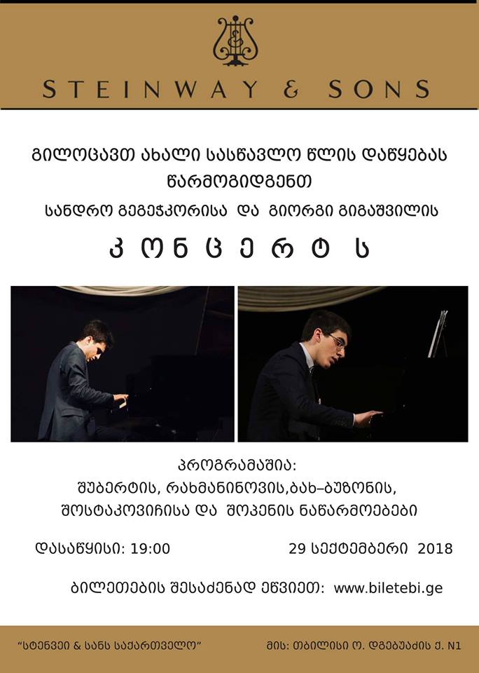 29 სექტემბერს, 19:00 საათზე, Steinway & Sons Georgia საფორტეპიანო მუსიკის საღამოს მართავს.
