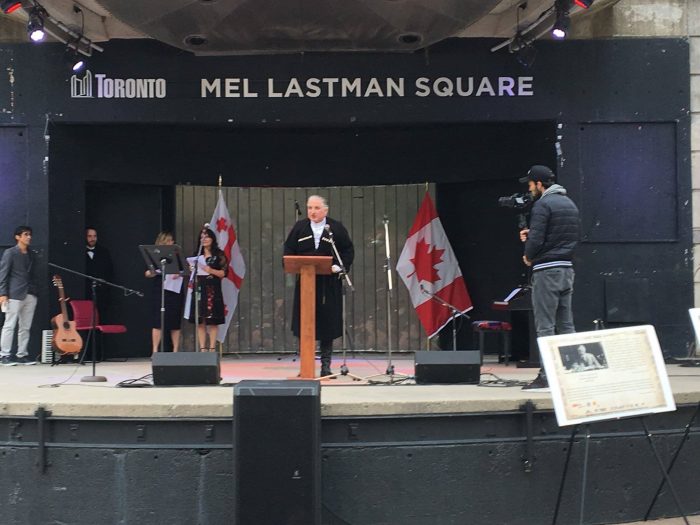 ტორონტოს მელ ლასტმანის სახელობის სკვერში, საქართველოს პირველი რესპუბლიკის 100 წლისთავისადმი მიძღვნილი საღამო გაიმართა.