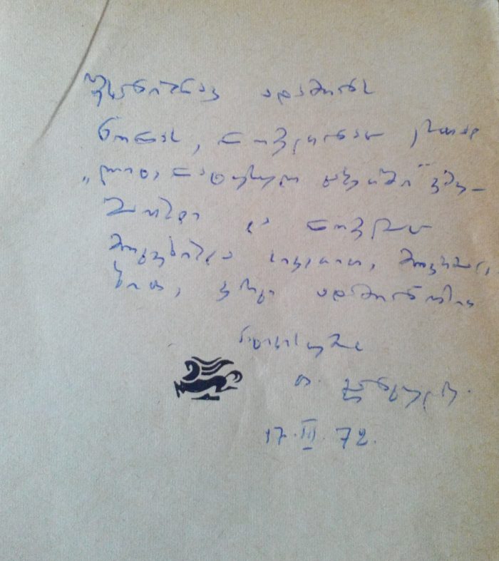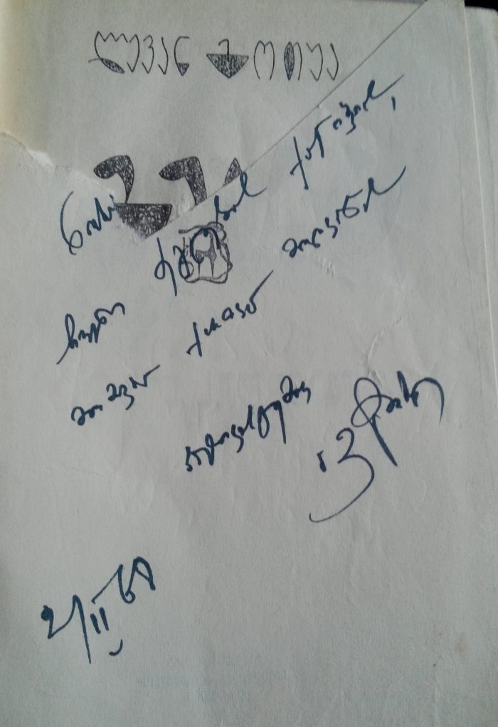 – ეს წიგნი სხვამ მომპარა და სახელი ამოჭრა, რომ თავისად გაესაღებინა ბატონი ლევანის ნაჩუქარი წიგნი… მოგვიანებით იძულებული გახდა, დაებრუნებინა…
