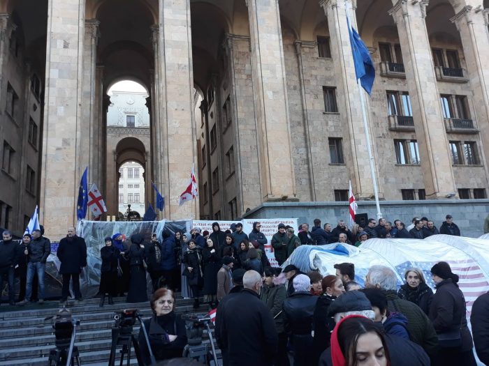 პარლამენტთან მალხაზ მაჩალიკაშვილისა და ზაზა სარალიძის საპროტესტო აქცია მიმდინარეობს (ფოტოკოლაჟი)