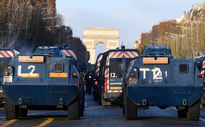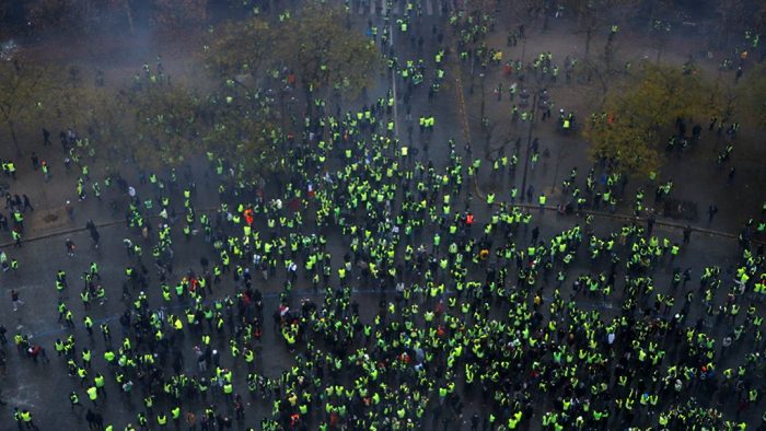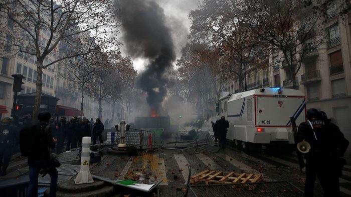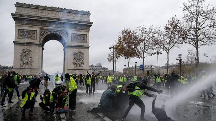 პარიზში „ყვითელი ჟილეტების“ აქციაზე ვითარება დაიძაბა. განსაკუთრებით, რთული ვითარებაა შანზელიზეს ტერიტორიაზე. აქციის მონაწილეები პოლიციას სხვადასხვა ნივთებს და ბოთლებს ესვრიან. ვითარების განმუხტვის მიზნით, პოლიციამ ცრემლსადენი გაზი გამოიყენა. მანამდე კი, აქციის მონაწილეები პოლიციელებს დაუპირისპირდნენ.