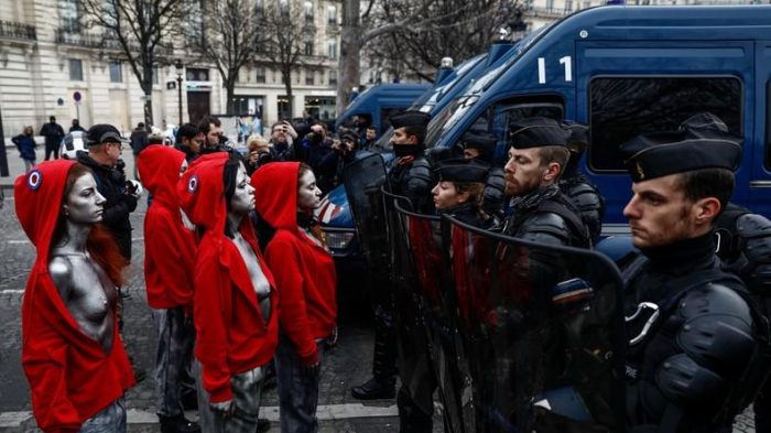 შიშველი პროტესტი პარიზში (ფოტო, ვიდეო)