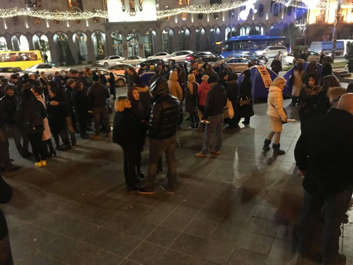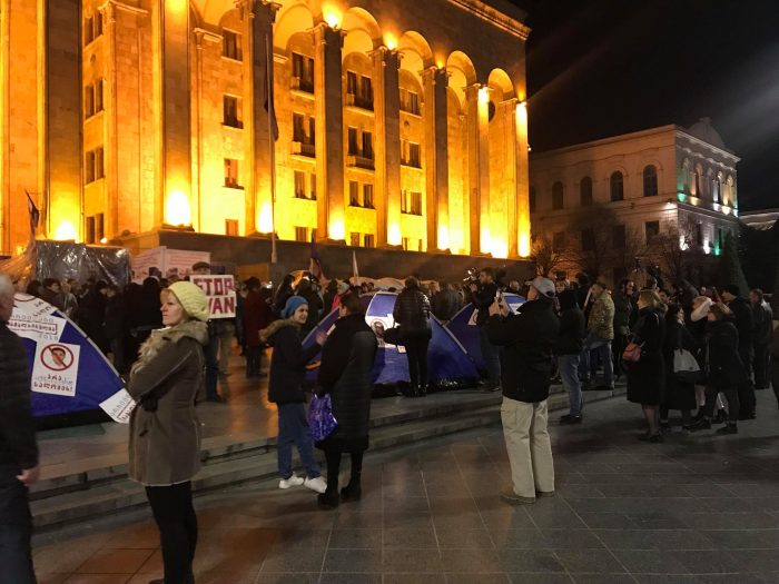 “არა სალომეს!” – ამ წარწერებით რუსთაველის გამზირზე ოპოზიციის წარმომადგენლებმა ორი კარავი განათავსეს.