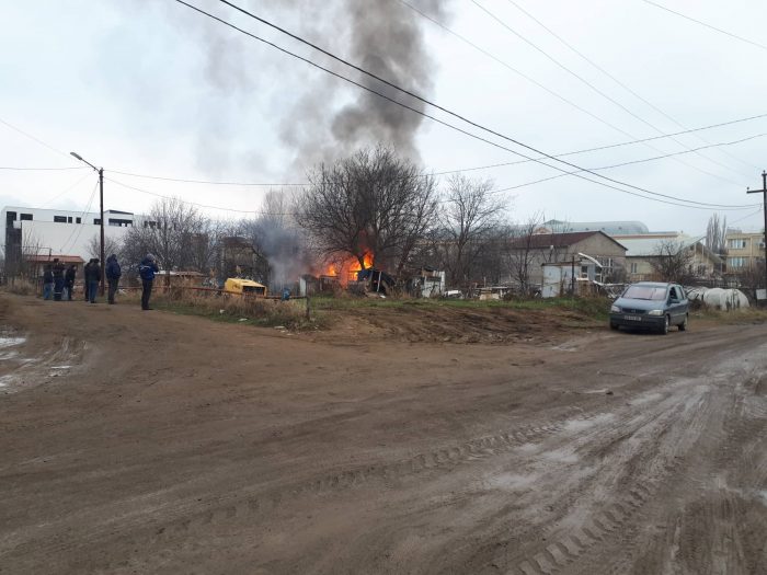 საქალაქო სასამართლოს მიმდებარე ტერიტორიაზე ფარდული იწვის (ფოტო,ვიდეო)
