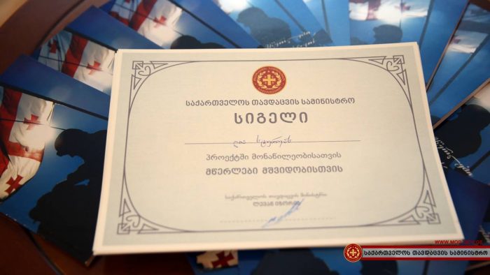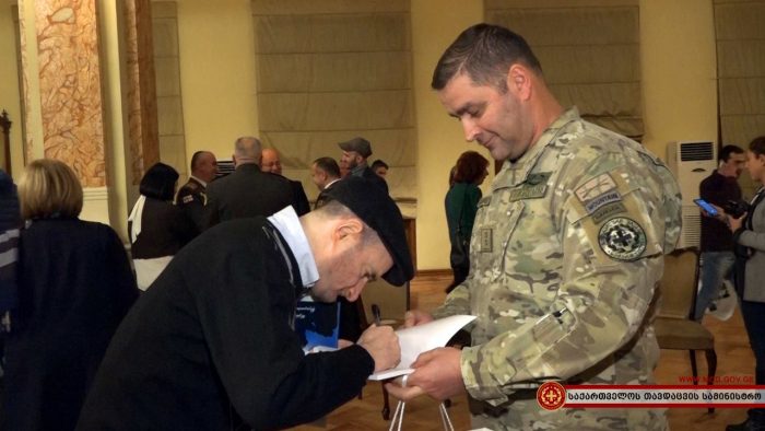 საქართველოს თავდაცვის მინისტრმა ლევან იზორიამ საჯარო ბიბლიოთეკაში შეკრებილ საზოგადოებას სიტყვით მიმართა და აღნიშნა, რომ პროექტში მწერლების ჩართულობა სამხედრო-სამოქალაქო თანამშრომლობის საუკეთესო გამოვლინებაა. მან პროექტის მონაწილე თითოეულ მწერალს მადლობის სიგელები გადასცა და დამდეგი შობა-ახალი წელი სიმბოლური საჩუქრებით მიულოცა.
