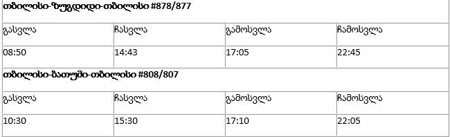 დამატებითი მატარებლები იმოძრავებენ შემდეგი განრიგით:
